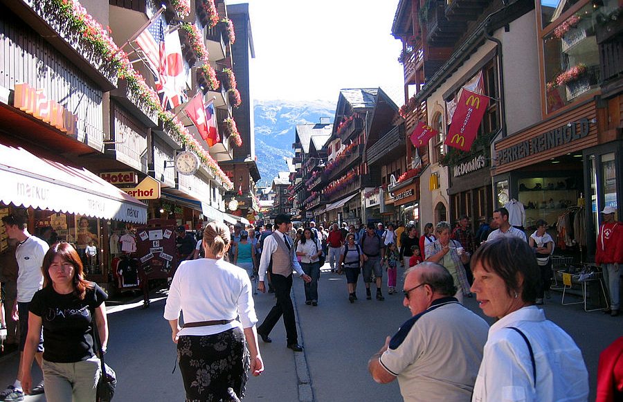 Die Bahnhofstrasse von Zermatt (Bild: Coolcaesar, Wikimedia, CC)